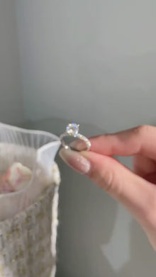 The band is fully diamond-set for continuous shine, while a hidden halo beneath the center stone adds an extra layer of brilliance without altering the classic silhouette. Designed for those who want the most dazzling, eye-catching sparkle while still enjoying timeless elegance and everyday wearability.