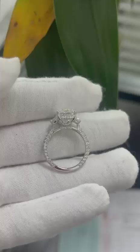 Emerald Cut Diamond Sparkling Three Stone Ring