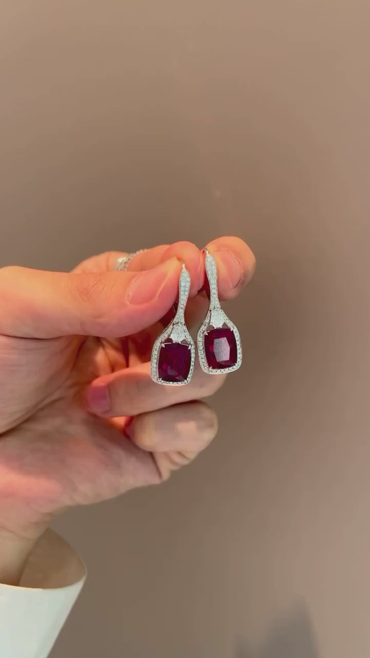 Each earring features a 1-carat premium lab-grown gemstone of your choice. The ruby version is set in a square cushion cut, a shape known for enhancing depth, saturation, and color vibrance. The sapphire and emerald options are equally selected for rich, concentrated color and refined clarity.