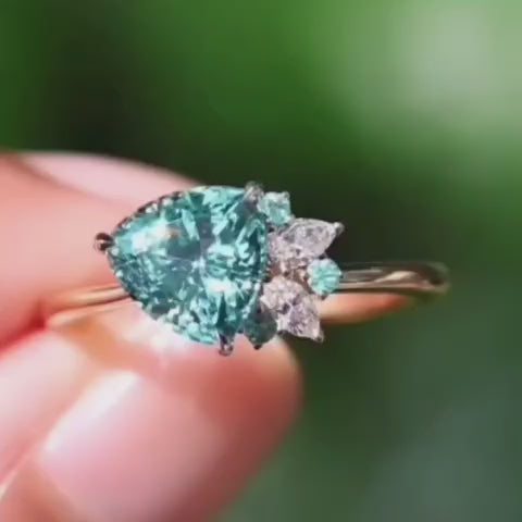 Trillion Cut Lab Padparadscha Sapphire Ring in 18k Yellow Gold | Manjam Bahrain